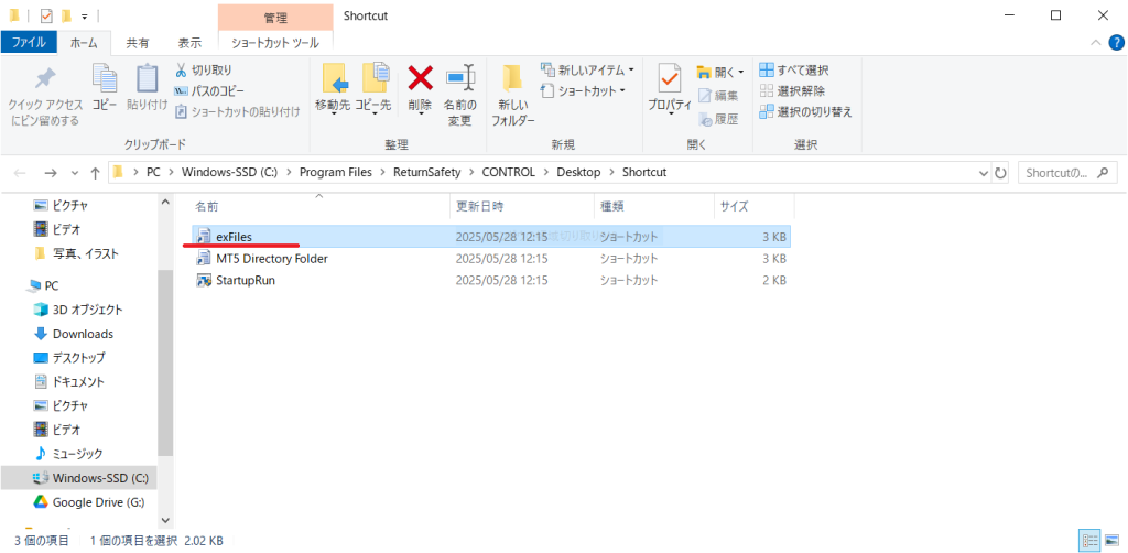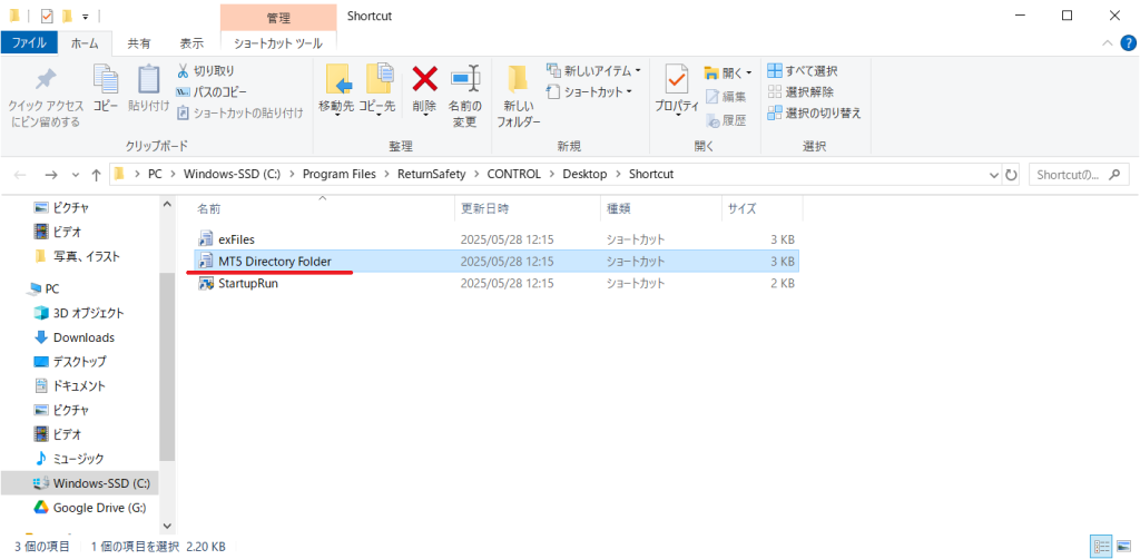 3. デスクトップに作成されたショートカットリンクから各ファイルを、ローカルアカウントにインストールしたMT5のディレクトリにコピーします。