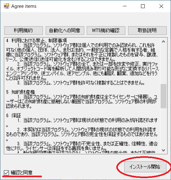 2. 内容を確認してからチェックを入れ、インストールを開始します。